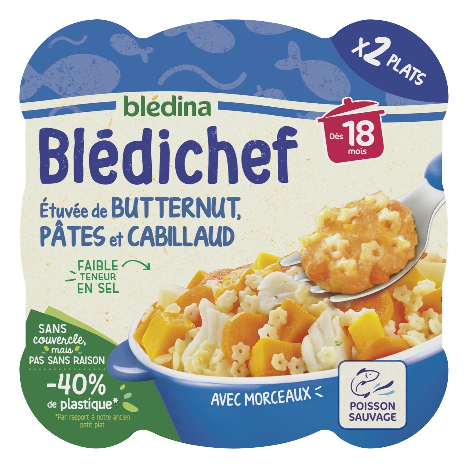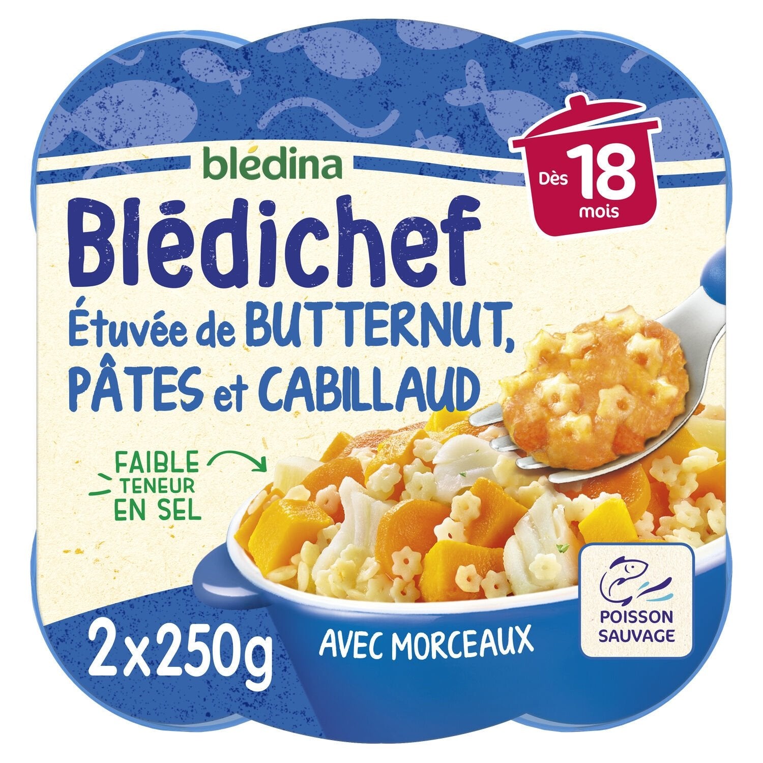 Plat Bébé Dès 18 Mois Etuvée de Butternut Pâtes et Cabillaud Blédichef BLEDINA
