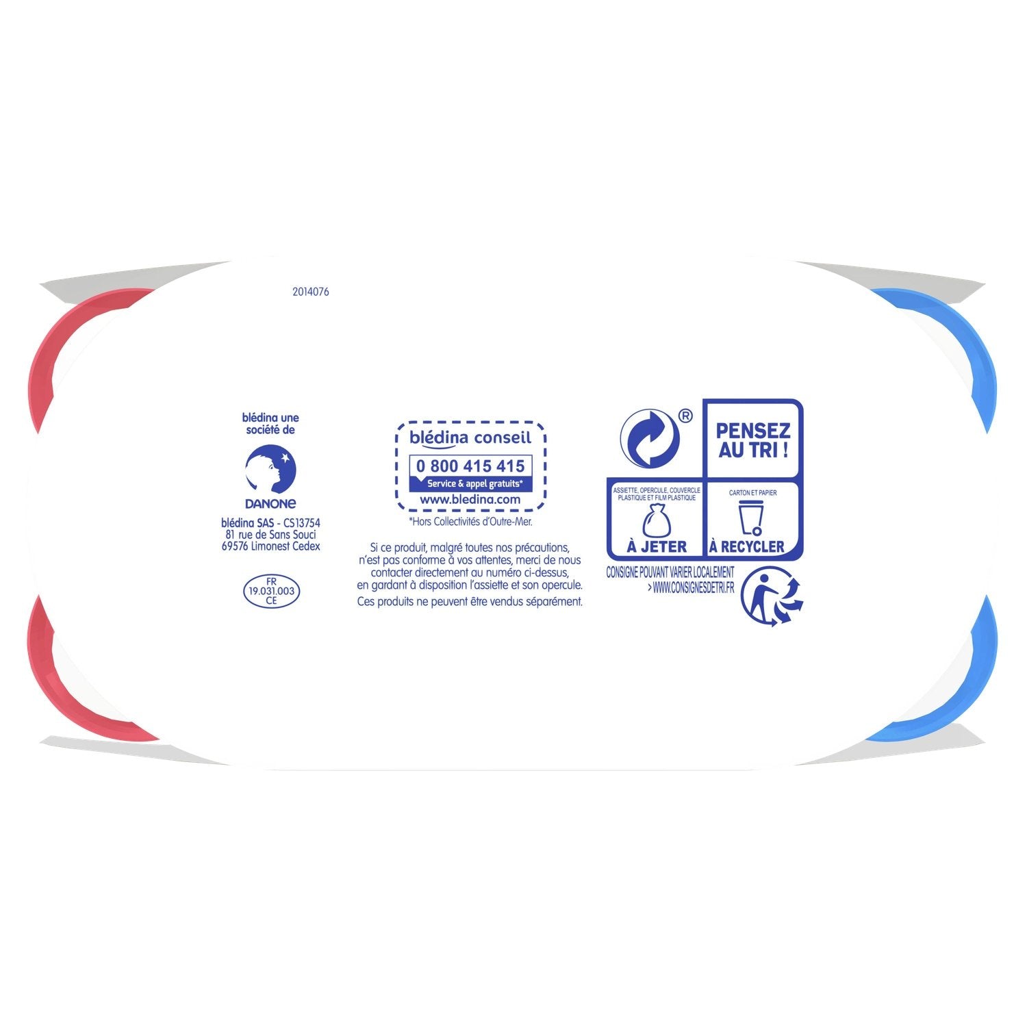 Raison sociale : blédina SAS - CS13754 - 81 rue de Sans Souci - 69576 Limonest Cedex