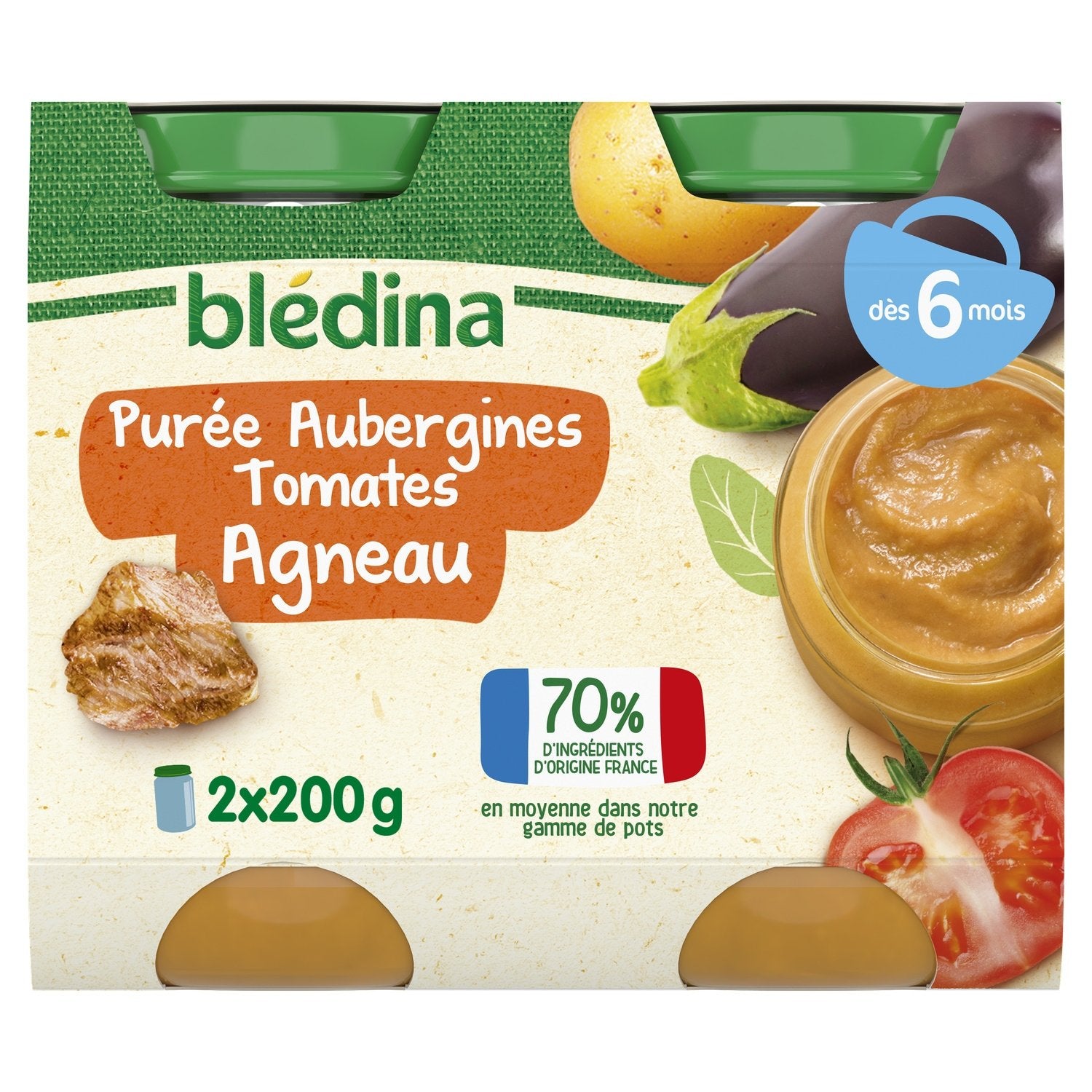 Plat Bébé Dès 6 Mois Purée Aubergines Tomates Agneau BLEDINA