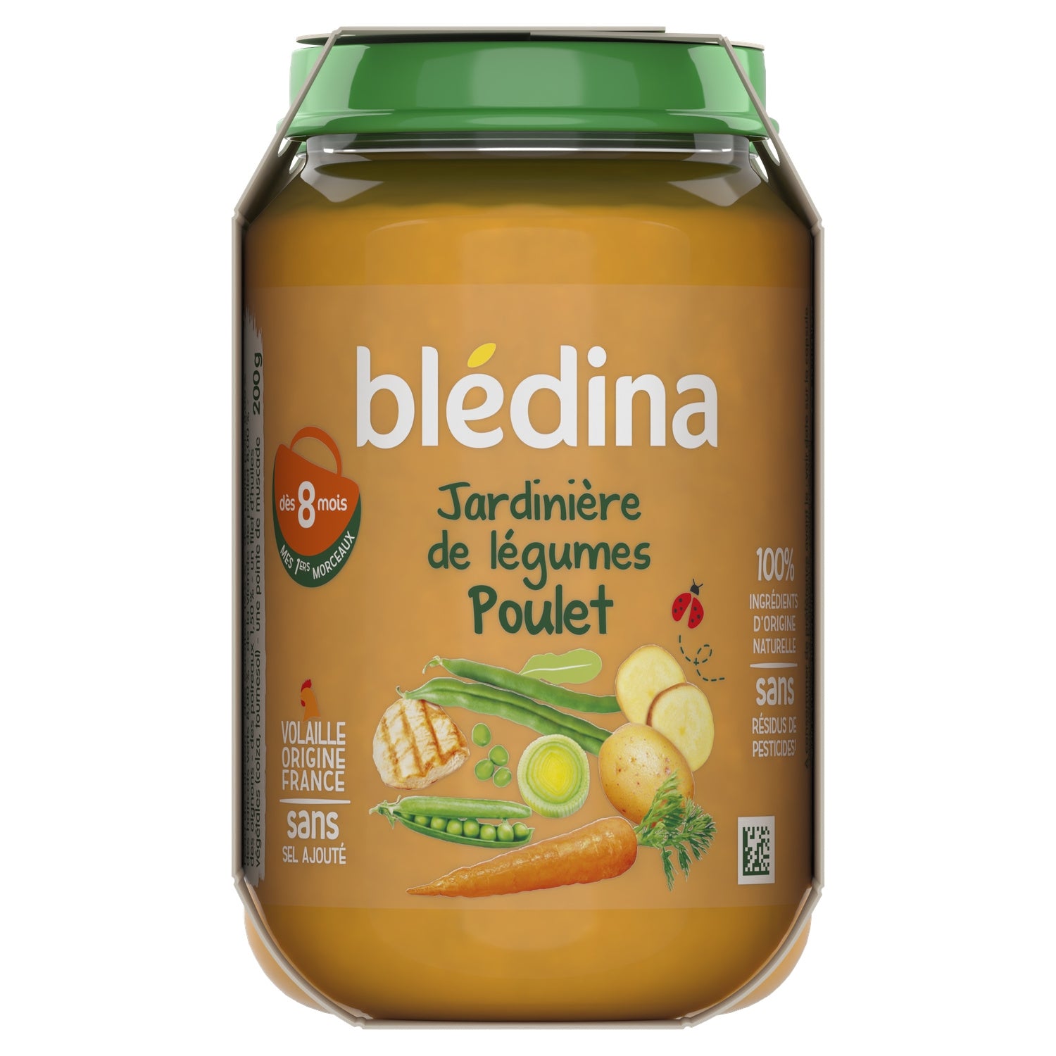 Expert de la diversification alimentaire depuis plus de 100 ans, Blédina vous accompagne pour tous les repas de votre bébé grâce à plus de 250 recettes conçues par des nutritionnistes et parfaitement adaptées à ses besoins*. Blédina - Jardinière de Légumes Poulet dès 8 mois. Les petits pots blédina, de délicieuses recettes pour un déjeuner complet avec légumes, féculents et protéines ! Une texture avec petits morceaux fondants à déguster dès 8 mois. *Selon la réglementation de l'alimentation infantile.