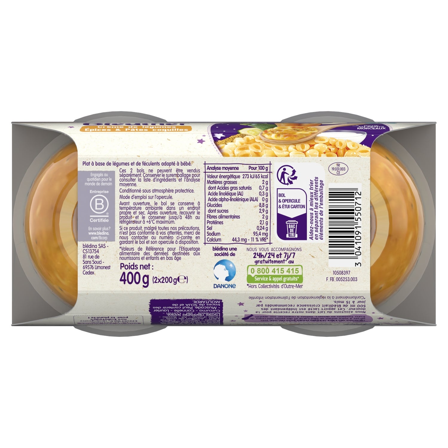 Plat Bébé du Soir Dès 15 Mois Crème de Légumes Epices et Pâtes Coquille Blédiner BLEDINA