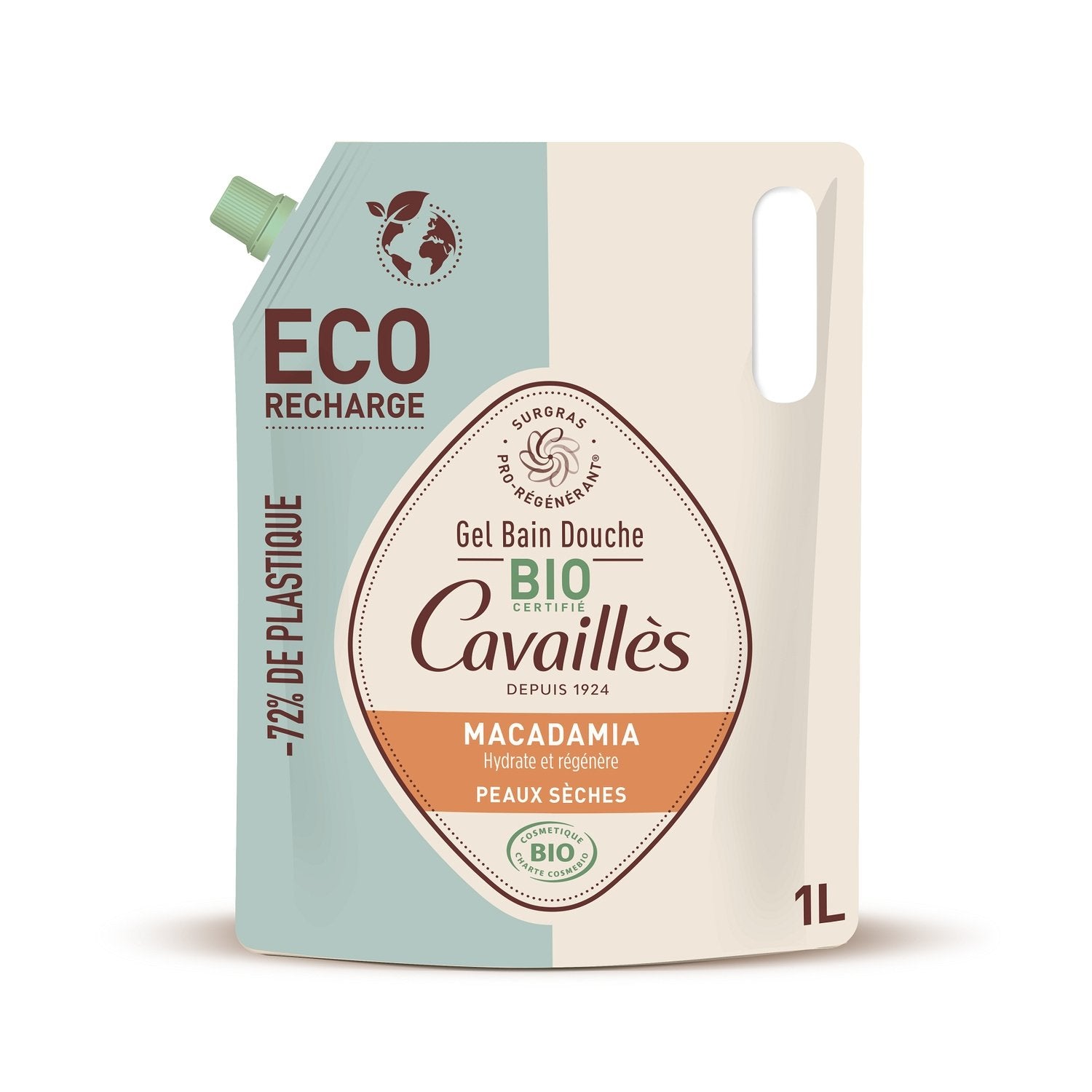 Recharge Gel Douche Corps Hydrate et Protège au Macadamia Surgras Végétal Pro-Régénérant Bio ROGE CAVAILLES