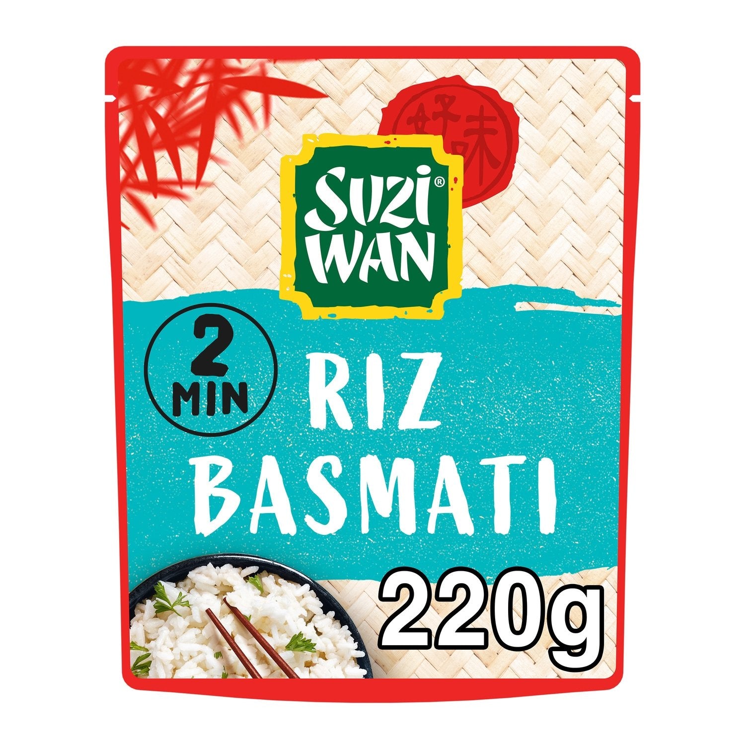 DétailsSUZI WAN Riz Basmati Micro Ondable 220g 2min Poids unitaire : 264 grs Code-barres EAN : 5010034016507 Marque : SUZIWAN