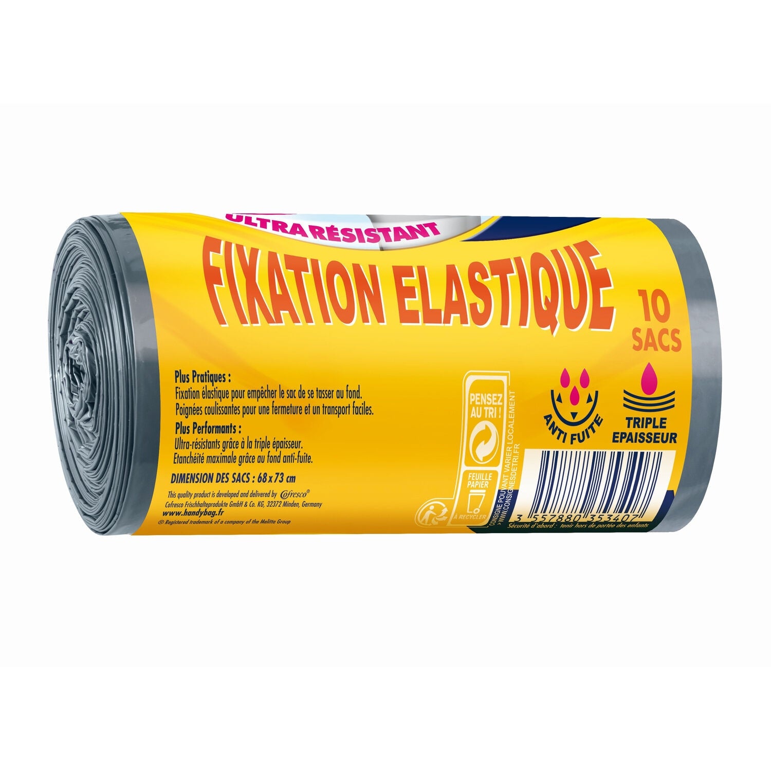 DétailsHANDY BAG sacs poubelle FIXATION ELASTIQUE à poignées coulissantes 50L Poids unitaire : 326 grs Code-barres EAN : 3557880353407 Marque : HANDY BAG