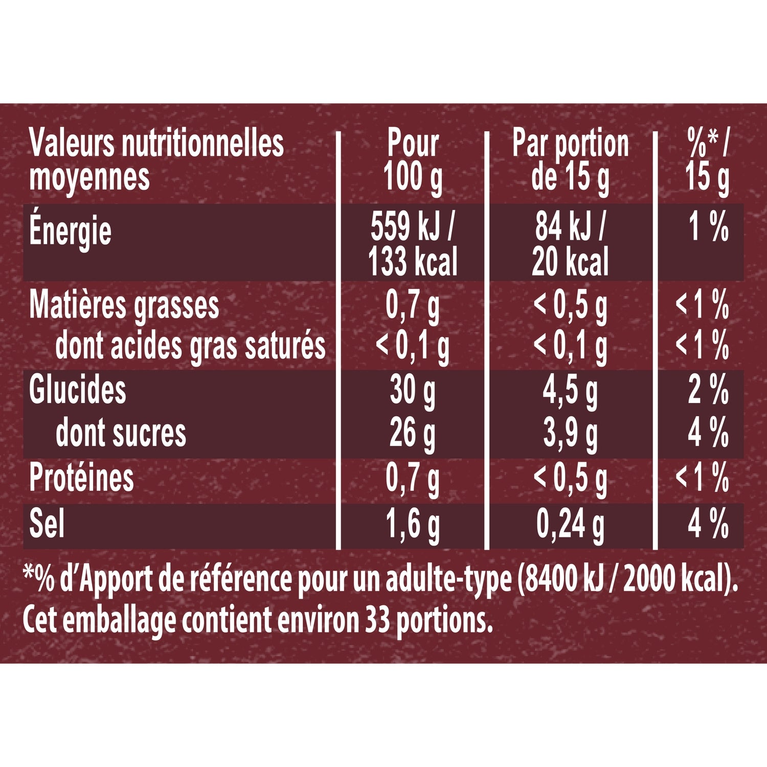 Les informations présentées (ingrédients, valeurs nutritionnelles, conseils d’utilisation, etc.) sont fournies à titre indicatif et peuvent varier selon les approvisionnements. Nous vous invitons à vérifier systématiquement les informations figurant sur l’emballage avant consommation. Photo non contractuelle – l’apparence, le conditionnement ou certains détails du produit peuvent différer de l’illustration. Le design de l'emballage est susceptible d’évoluer.