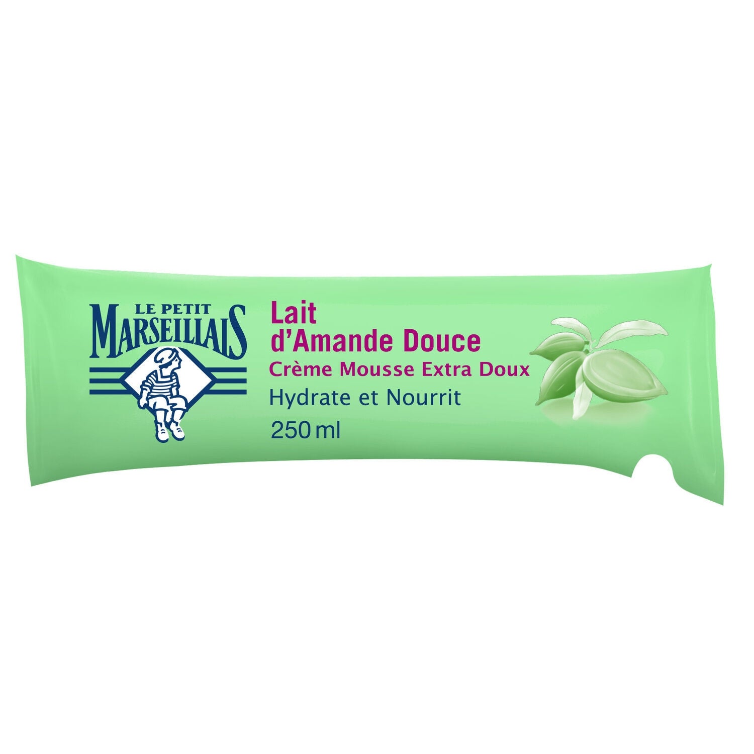 Toujours aussi costaud mais plus écolo!* *50% de plastique en moins que le berlingots d'avant Le lait d'amande douce, au parfum délicat, est obtenu à partir d'amandes récoltées à la fin de l'été, sous le soleil de Méditerranée. La Crème Mousse au Lait d'Amande Douce du Petit Marseillais lave en douceur votre peau, grâce à sa mousse légère qui libère un parfum doux et enveloppant. pH neutre pour la peau Testé sous contrôle dermatologique Ingrédients de la base lavante facilement biodégradables Enrichi en agent hydratant d'origine végétale