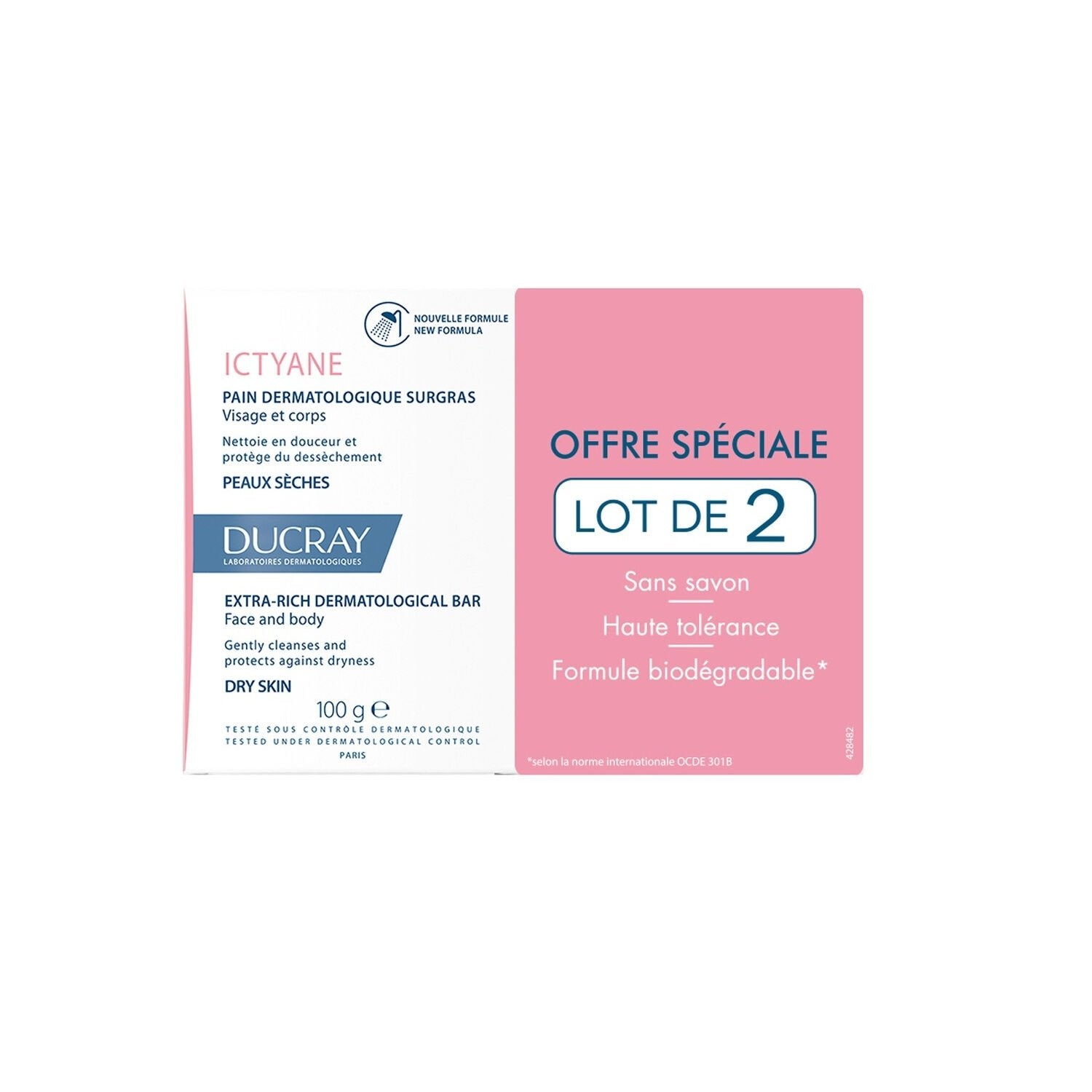 Ducray - Ictyane - Pain dermatologique surgras - Offre spéciale duo 2X100gr
