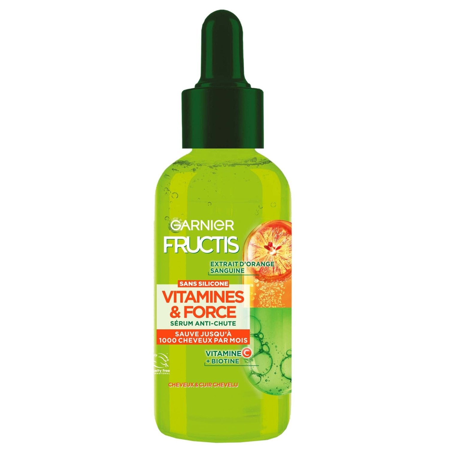 Serum anti-chute Garnier Fructis pour cheveux fragiles Sauve jusqu'à 1000 cheveux par mois.