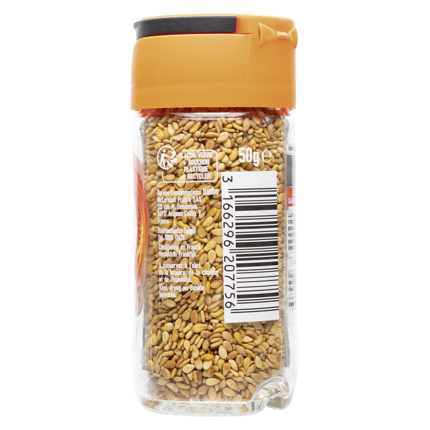 DétailsGraines de sésame doré Poids unitaire : 133 grs Code-barres EAN : 3166296207756 Marque : DUCROS