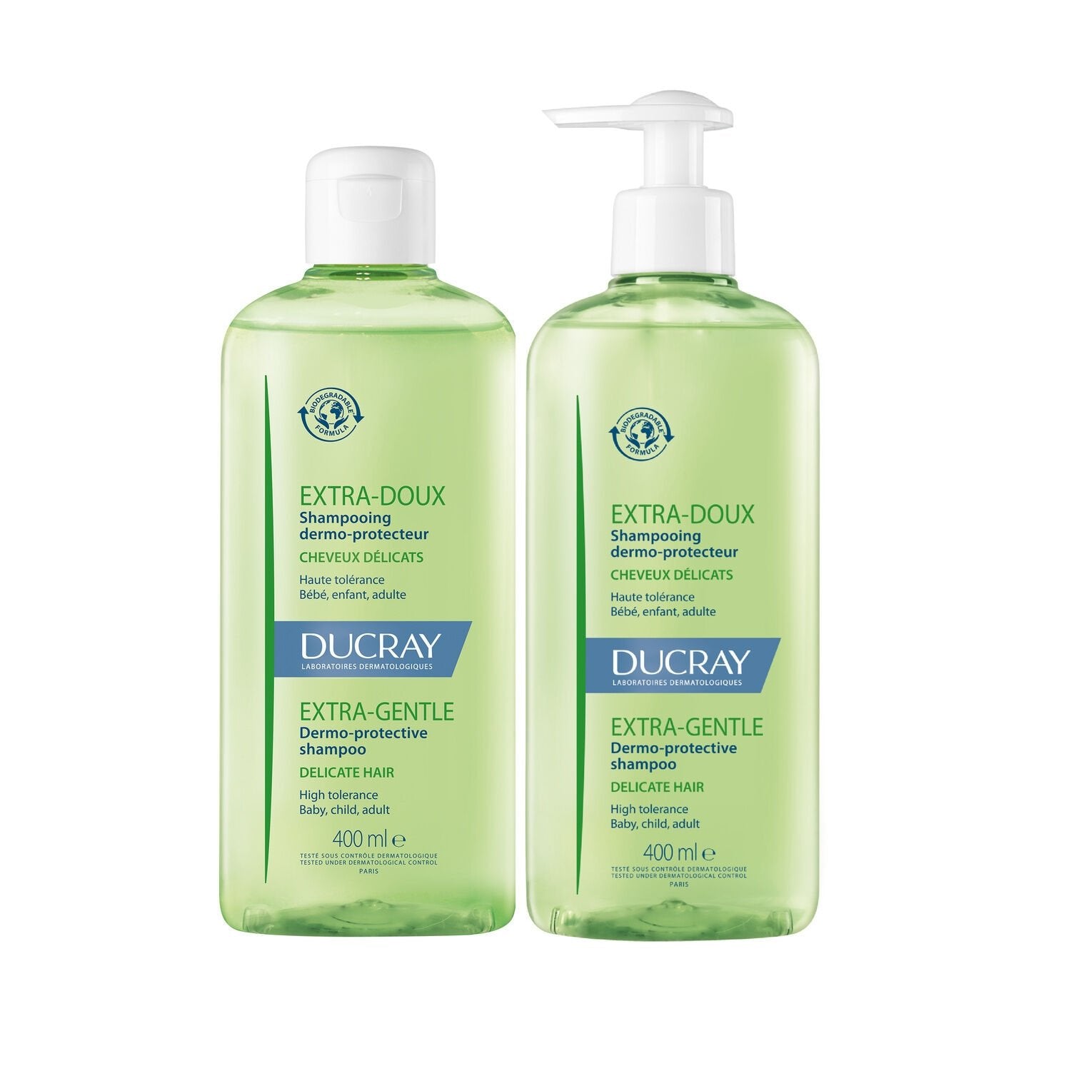 Ducray - Extra-Doux - Shampooing quotidien dermo-protecteur cheveux normaux et délicats de toute la famille - Offre spéciale capsule + pompe 2X400ml