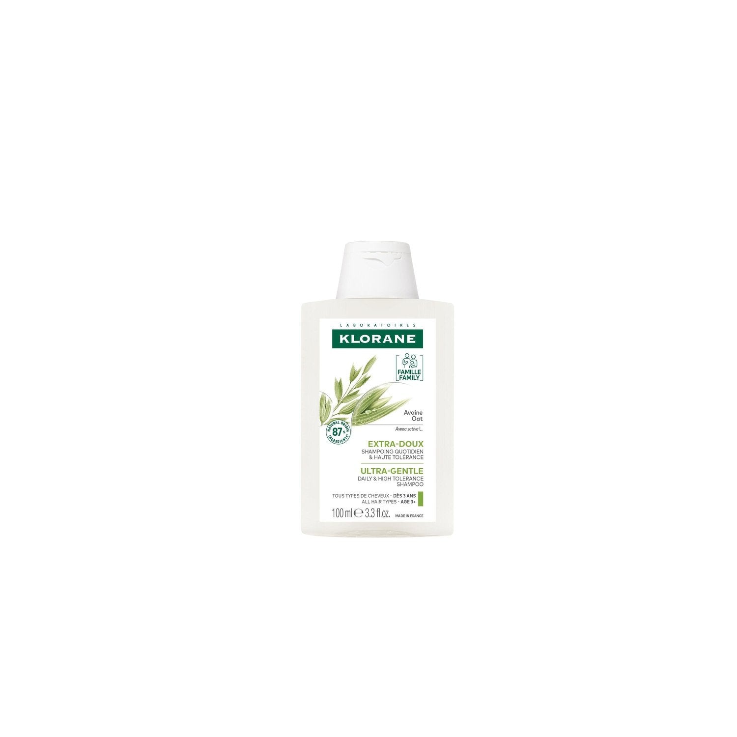Le Shampoing à l'Avoine issue de culture BIO, lave, adoucit et protège le cuir chevelu et les cheveux de toute la famille, dès 3 ans. Sa formule biodégradable* haute tolérance comprend 87 % d'ingrédients d'origine naturelle. Testé sous contrôle dermatologique et pédiatrique, le Shampoing Extra-doux respecte l'équilibre des cuirs chevelus délicats de toute la famille, dès 3 ans. Grâce aux propriétés adoucissantes et protectrices de son extrait d'Avoine, cultivé en bio et en circuit court dans le Sud-Ouest de la France, il offre aux cheveux un véritable bain de douceur et facilite le démêlage. Les cheveux sont parfaitement propres, souples et protégés. *Selon la norme OCDE 301B.