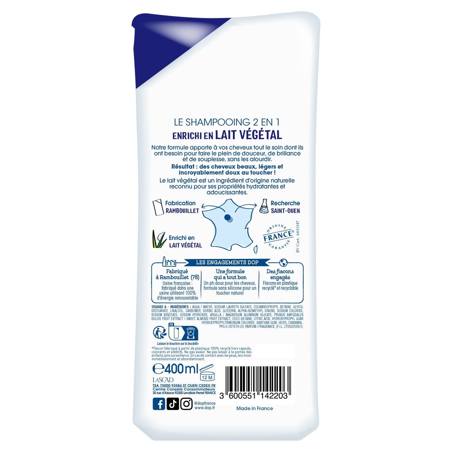 DOP Shampooing 2-en-1 Hydratant Lait Végétal Sans Silicone pH Doux Tous Types de Cheveux 400ml