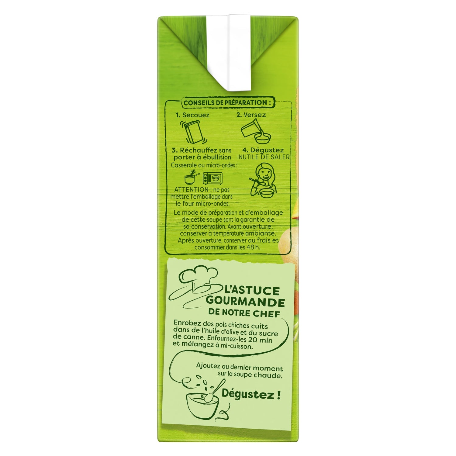 Une soupe nutri-score B cuisinée avec 100% d'ingrédients naturels et des légumes issus de l'agriculture durable, pour un repas simple et riche en goût. Cette soupe végétarienne et riche en légumes est préparée sans exhausteur de goût, sans colorant et sans conservateur (comme toutes les soupes liquides au rayon ambiant).
