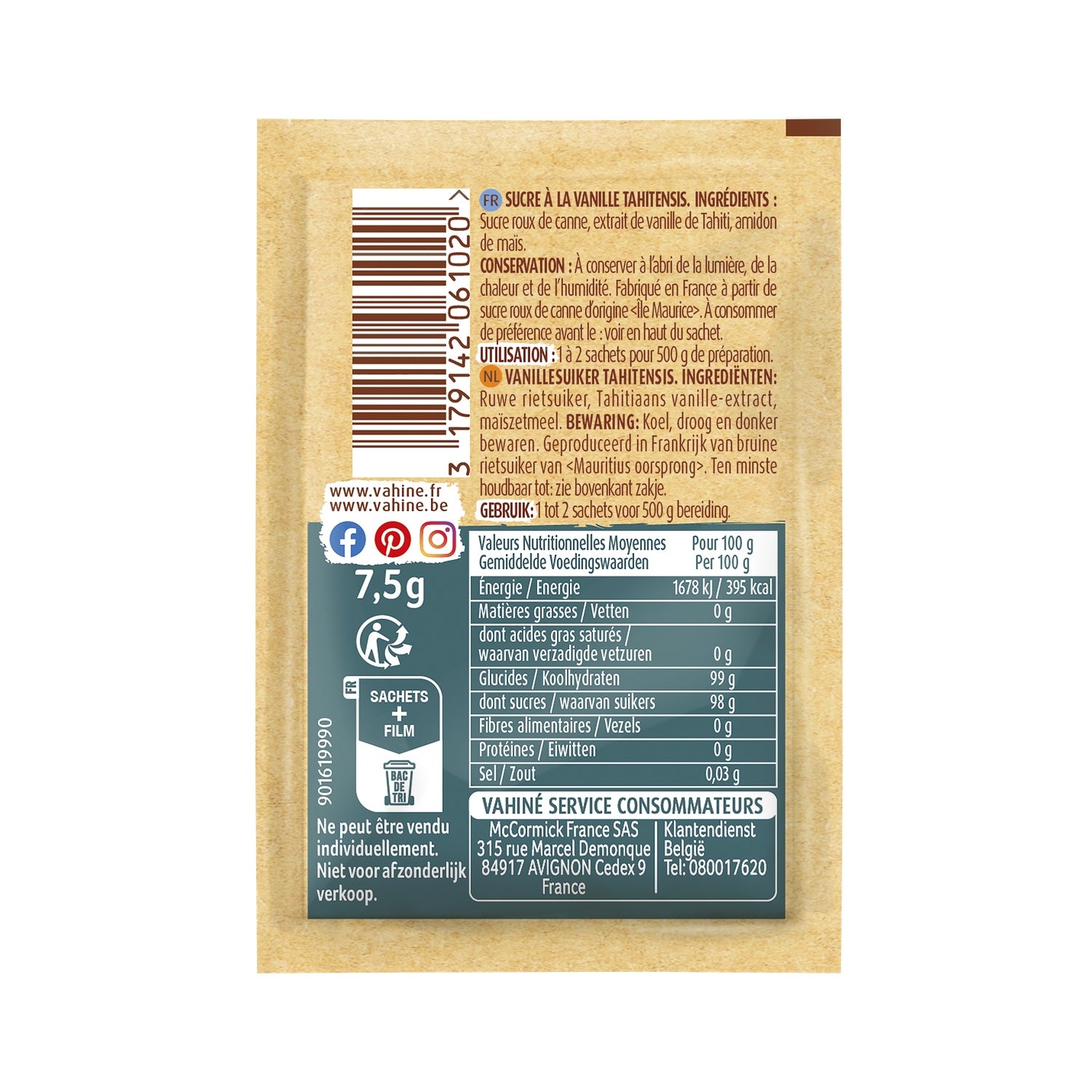 Ingrédients : sucre roux de canne, extrait de vanille de tahiti, amidon de maïs.
