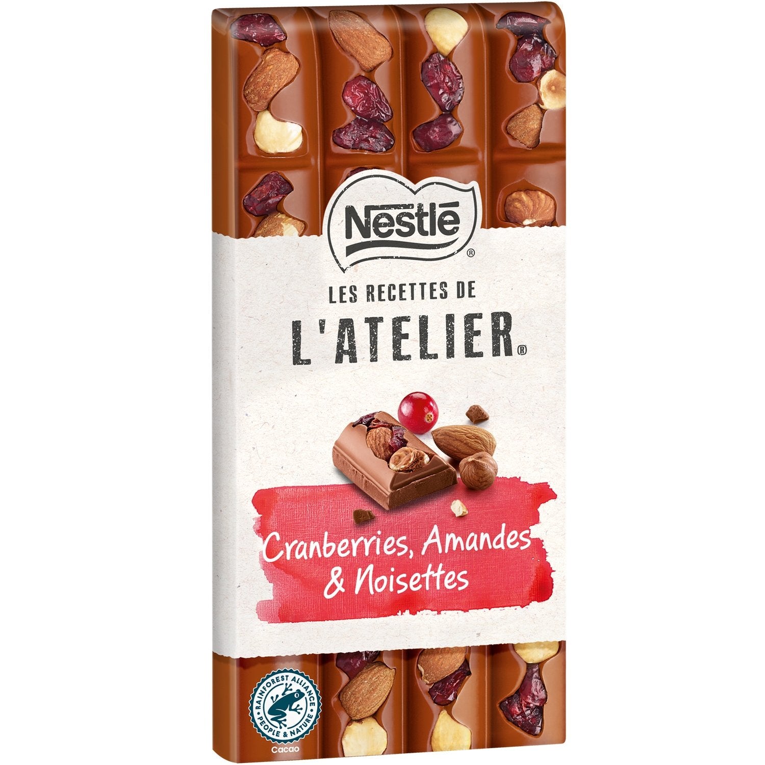 Tablette de Chocolat Lait les Recettes de l'Atelier Cranberries Amandes Noisettes NESTLE