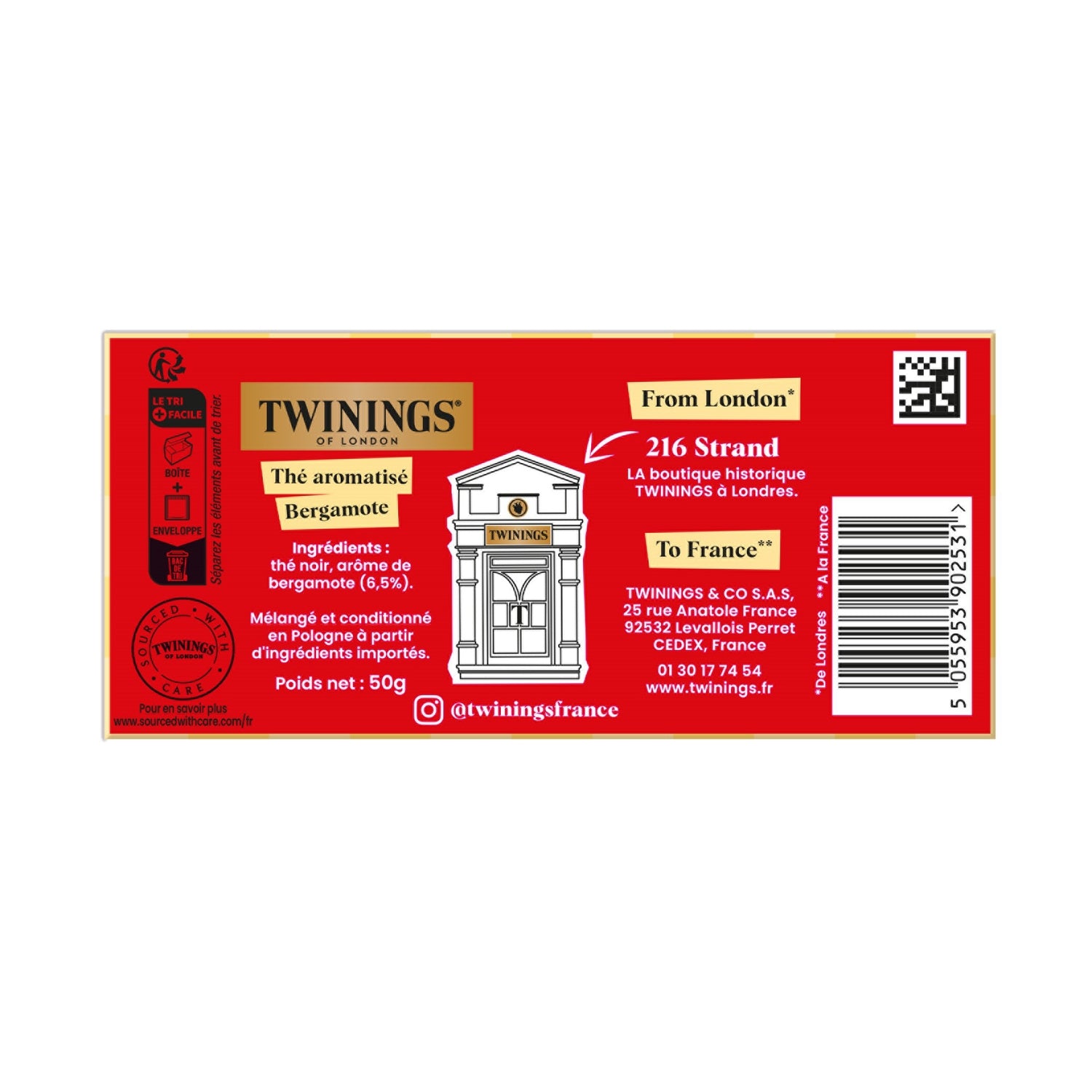 DétailsOriginal Earl Grey Poids unitaire : 95 grs Code-barres EAN : 5055953902531 Marque : TWININGS