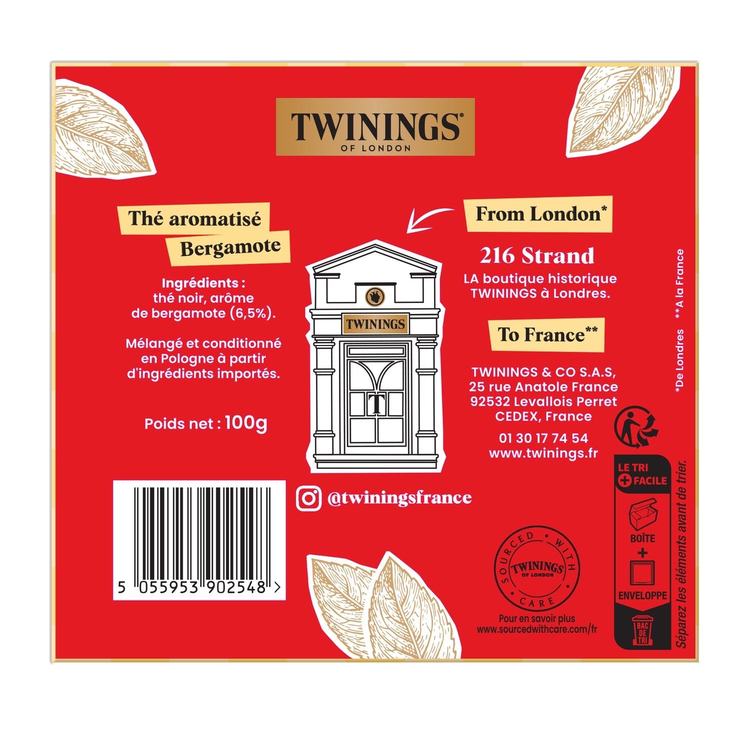 Ingrédients : thé noir, arôme de bergamote (6.5%).