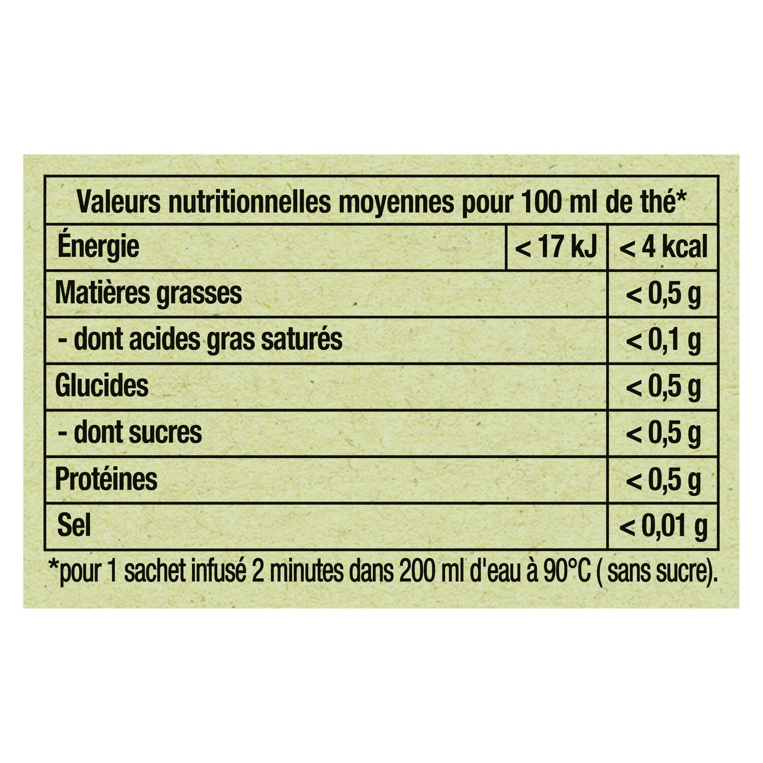 valeur énergétique (kJ) : 17 kJ / 100 mL