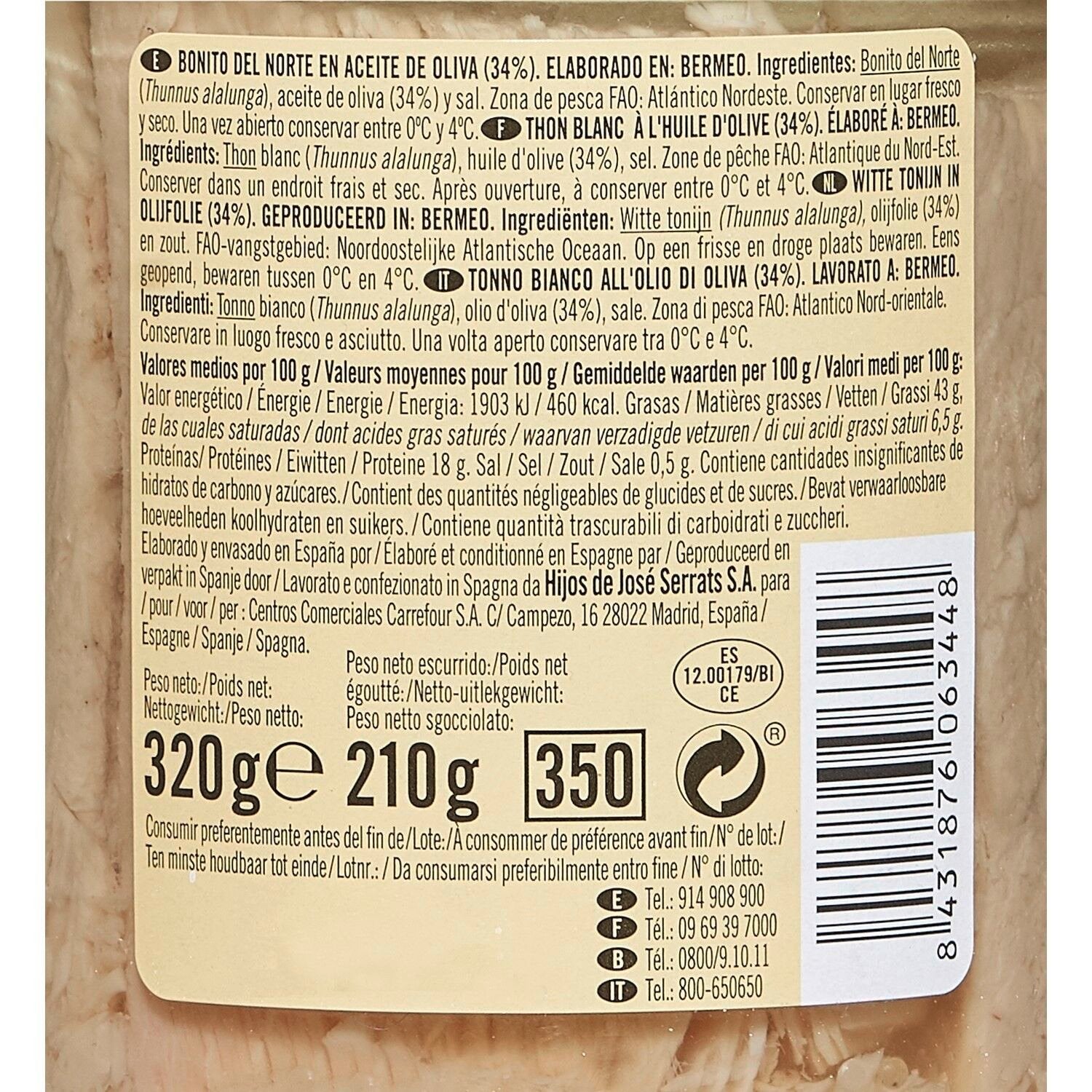 THON blanc (Thunnus alalunga), huile d'olive (34%), sel.