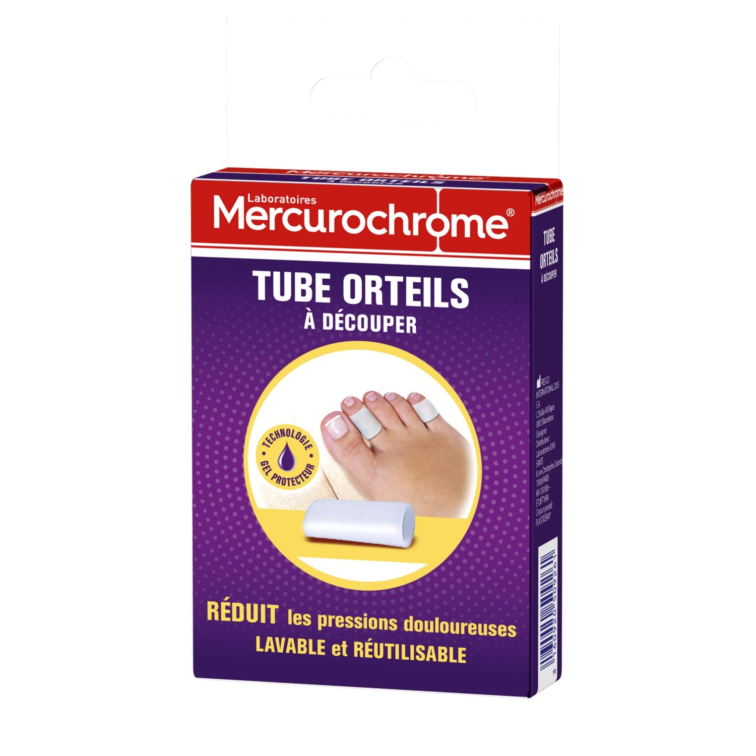 Le tube orteils des Laboratoires Mercurochrome® soulage les zones douloureuses (cors, ampoules, orteils en griffe, callosités...) en réduisant les pressions exercées par les chaussures. En gel, le tube s'adapte à tous les orteils et reste en place pour vous assurer un confort optimal toute la journée. Ce tube en gel apporte douceur, confort et améliore l'aspect des cicatrices en toute discrétion grâce à l'huile minérale située à l'intérieur du tube. Il est lavable, réutilisable et sa longueur vous assure jusqu'à 4 découpes pour une utilisation longue durée.
