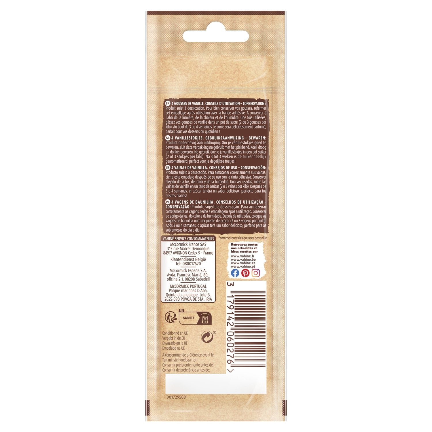 4 gousses Emballage Fraîcheur 100% naturelle* *comme toutes les gousses de vanille