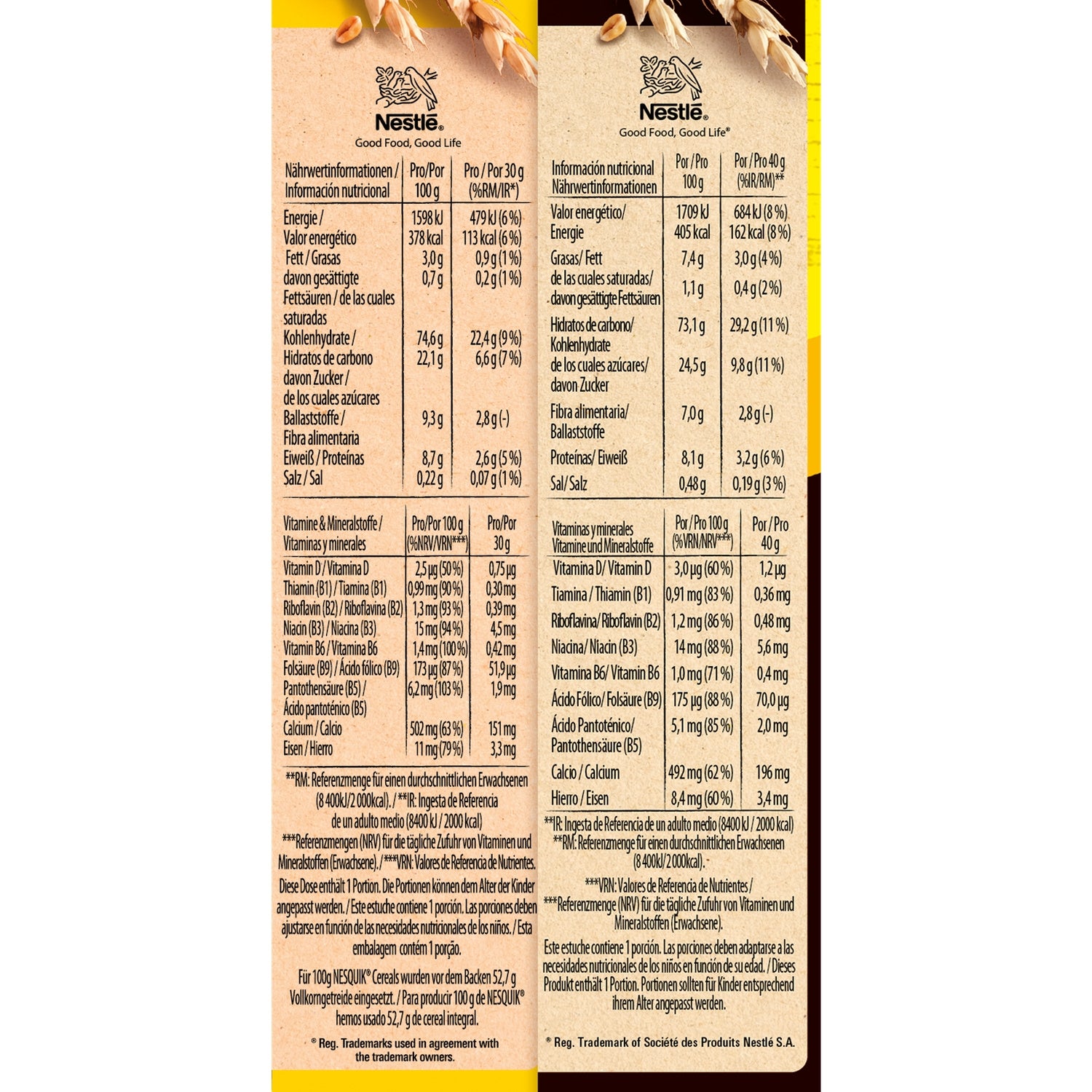 5 variétés de céréales : CRUNCH, CHOCAPIC, LION, NESQUIK, COOKIE CRISP,Blé complet, 1er ingrédient,Sans colorant,Sans arôme artificiel,Fabriqué en France,Nutri-Score A, B et C