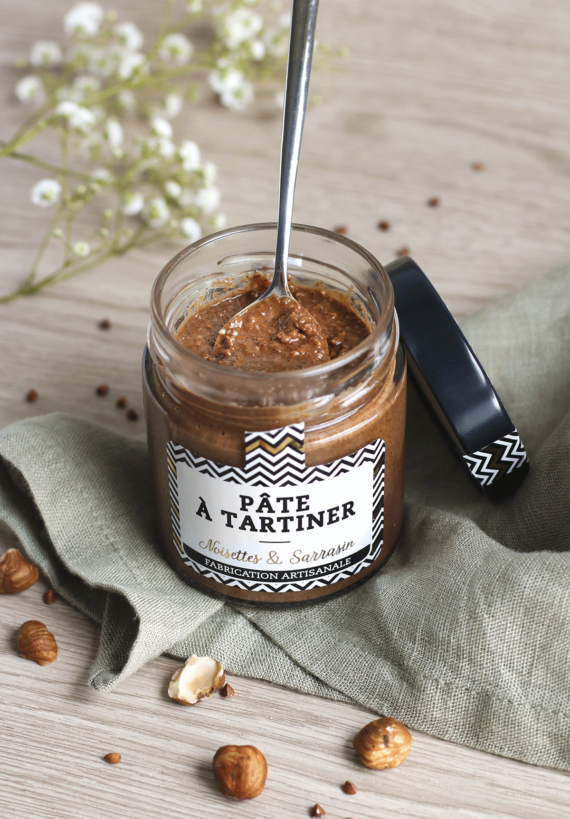 Plongez dans la gourmandise avec la pâte à tartiner noisettes & sarrasin de Mademoiselle Breizh, une recette artisanale bretonne qui mêle noisettes croquantes, chocolat au lait fondant et sarrasin torréfié pour un goût unique et inimitable. Confectionnée en Bretagne, cette pâte à tartiner locale est garantie sans huile de palme et sans conservateur, pour un plaisir sain et naturel.